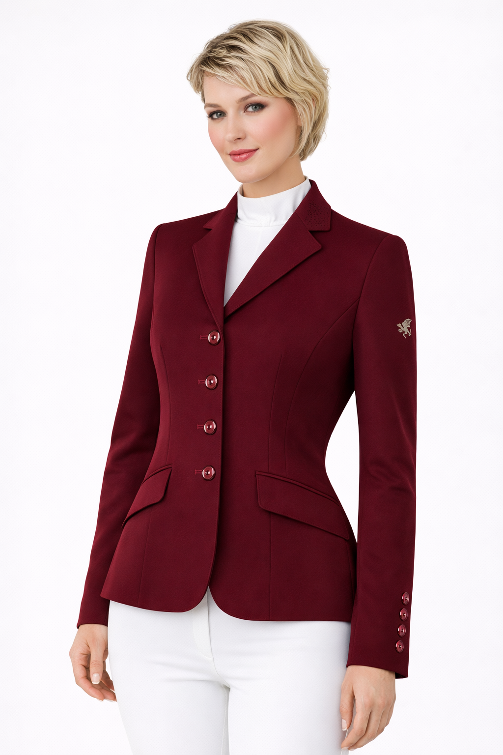 This is our most popular style jacket and is suitable for all disciplines. An elegant, close fitting, four buttoned jacket, with slender twin vents to emphasise the waistline. It is available in regular and long (back and sleeve length plus 3cm)