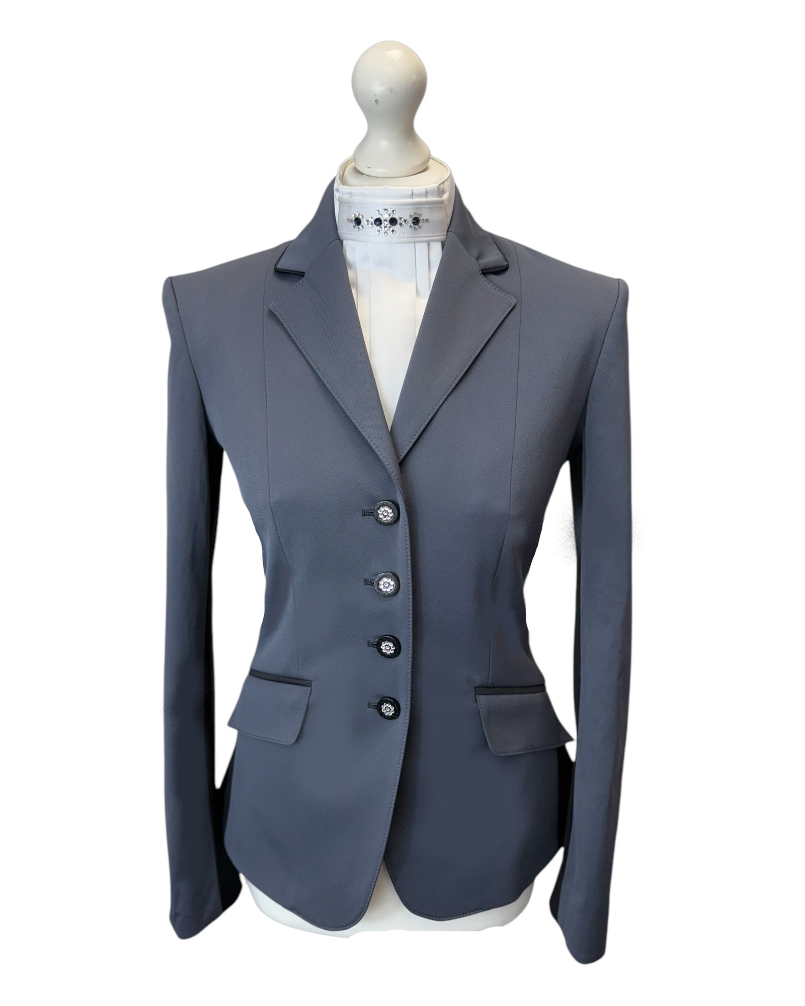 The Charlotte is our most popular style jacket and is suitable for all disciplines. An elegant, close fitting, four buttoned jacket, with slender twin vents to emphasise the waistline.