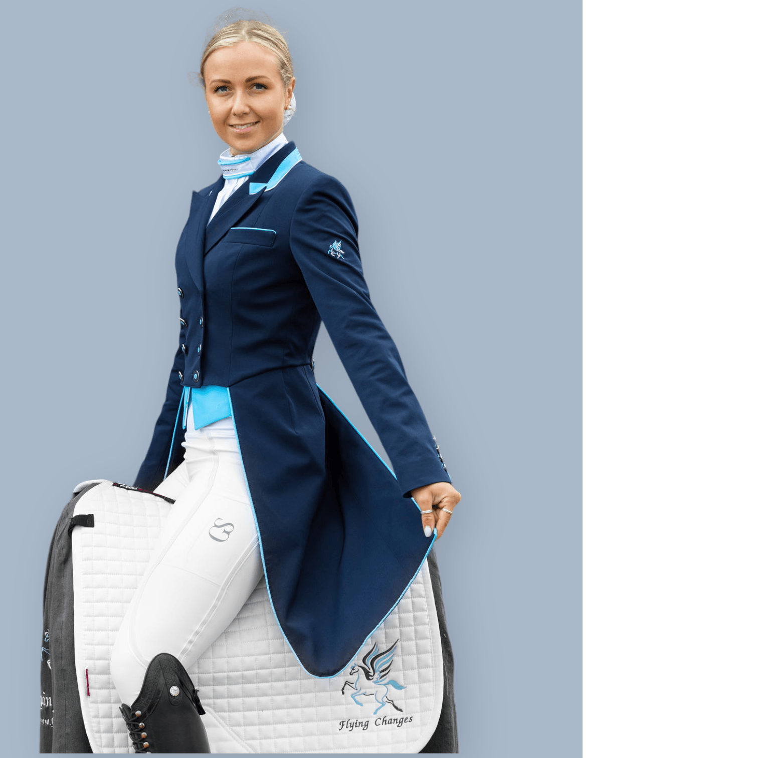 This beautifully tailored tailcoat has lengthened front panels, four rows of buttons and back piping, creating an elegant profile and a modern look to the traditional tailcoat style. The tails are fully weighted and the fabric is a dream to ride in whatever the climate.